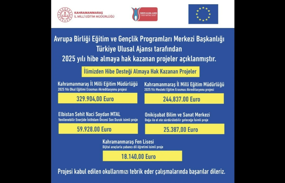 Kahramanmaraş'ta Hibe Desteği Almaya Hak Kazanan Projeler: