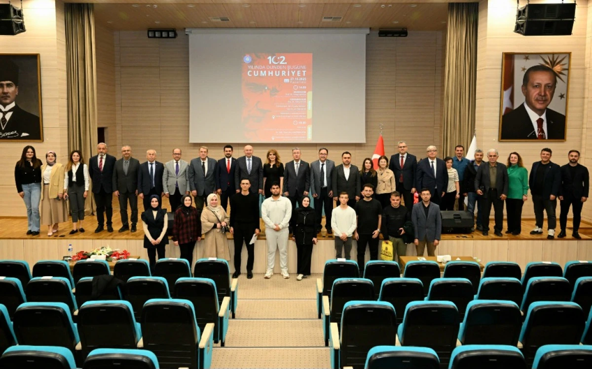 Panelin ikinci konuşmacısı Doç. Dr. M. Edip Çelik ise “Atatürk’te Cumhuriyet Fikri” başlıklı sunumunda Cumhuriyetin anlamına değinerek, “Egemenlik kayıtsız şartsız milletindir. Cumhuriyet, belli bir zümrenin değil halkın iradesidir. Demokrasiyle birlikte yaşar, onunla güçlenir.” dedi. Çelik, Cumhuriyetin değerini en iyi anlamanın yolunun çevremizdeki coğrafyaya bakmaktan geçtiğini belirterek, “Cumhuriyetin yaşaması, genç nesillerin adalete, bilgiye ve eşitliğe sahip çıkmasıyla mümkündür. Bu topraklar için mücadele eden kahraman gazilerimizi ve aziz şehitlerimizi rahmetle anıyor, Cumhuriyetimizin 102. yılını kutluyorum.” dedi.