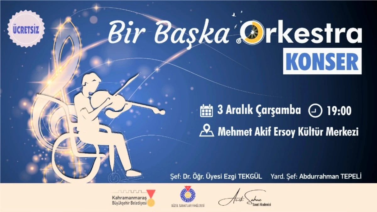 Kahramanmaraş Büyükşehir Belediyesi, sosyal belediyecilik vizyonu doğrultusunda toplumun her kesimine dokunan projelerini sürdürüyor. Sanatın birleştirici gücüyle farkındalık oluşturmayı amaçlayan etkinlikler kapsamında Büyükşehir Belediyesi, Kahramanmaraş Sütçü İmam Üniversitesi ve Açık Sahne Sanat Akademisi iş birliğinde hayata geçirilen ve üyelerinin tamamı özel gereksinimli vatandaşlardan oluşan “ Bir Başka Orkestra”, 3 Aralık Çarşamba günü Mehmet Akif Ersoy Kültür Merkezi’nde sahneye çıkacak. KSÜ Güzel Sanatlar Fakültesi akademisyenlerinden Dr. Öğr. Üyesi Ezgi Tekgül’ün şefliğinde gerçekleşecek konser, saat 19.00’da başlayacak. Orkestra, gecede seslendireceği seçkin eserlerle sanatın evrensel dilini bir kez daha ortaya koyacak ve dinleyicilere unutulmaz anlar yaşatacak. Büyükşehir Belediyesinden yapılan açıklamada tüm müzikseverlerin bu özel geceye davetli olduğu belirtildi.