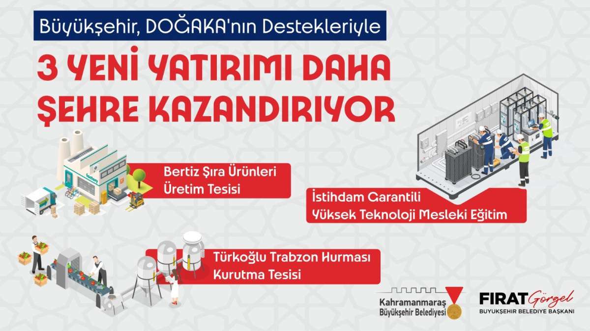 Büyükşehir Belediyesi, paydaş kurumlar iş birliğiyle şehre Bertiz Şıra Ürünleri Üretim Tesisi, İstihdam Garantili Yüksek Teknoloji Mesleki Eğitim Atölyesi ve Türkoğlu Trabzon Hurması Kurutma Tesisi kazandırıyor.
