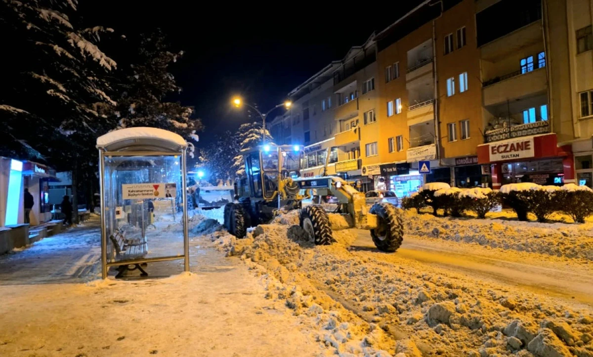 Kahramanmaraş Büyükşehir Belediyesi, şehir genelinde etkisini sürdüren kış şartlarına karşı çalışmalarını yoğun bir şekilde sürdürüyor. Şehrin dört bir yanında etkili olan kar yağışı ve buzlanmaya karşı ekipler, ulaşımın aksamaması için gece gündüz sahada görev yapıyor. Yol Yapım, Bakım ve Onarım Dairesi Başkanlığı ekiplerinin çalışmalarını yoğunlaştırdığı noktalardan biri de Göksun ilçe merkezi oldu. Yoğun kar yağışının etkili olduğu Göksun’da, ana arterlerde gerçekleştirilen kar küreme çalışmalarıyla ilçe merkezinde ulaşım kesintisiz olarak sağlanıyor. Ekipler, yalnızca kar küreme faaliyetleriyle sınırlı kalmayarak, buzlanma riskine karşı da önleyici tedbirlerini sürdürüyor. İlçe genelindeki ana arterler başta olmak üzere kritik güzergâhlarda tuzlama ve solisyon uygulamaları yoğun bir şekilde gerçekleştiriliyor. Bu çalışmalarla sürücülerin ve yayaların güvenliği ön planda tutuluyor. Gece gündüz demeden sürdürülen çalışmalar sayesinde Göksun’un ana ulaşım aksları sürekli kontrol altında tutulurken, olumsuz hava şartlarının günlük yaşamı aksatmaması hedefleniyor.