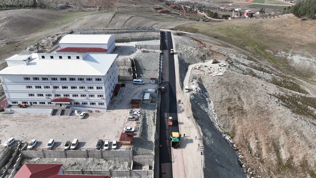 Büyükşehir Belediyesi, inşası tamamlanarak eğitime yeni başlayan Türkoğlu Mesleki ve Teknik Anadolu Lisesi yolunu sıcak asfaltla kaplıyor.