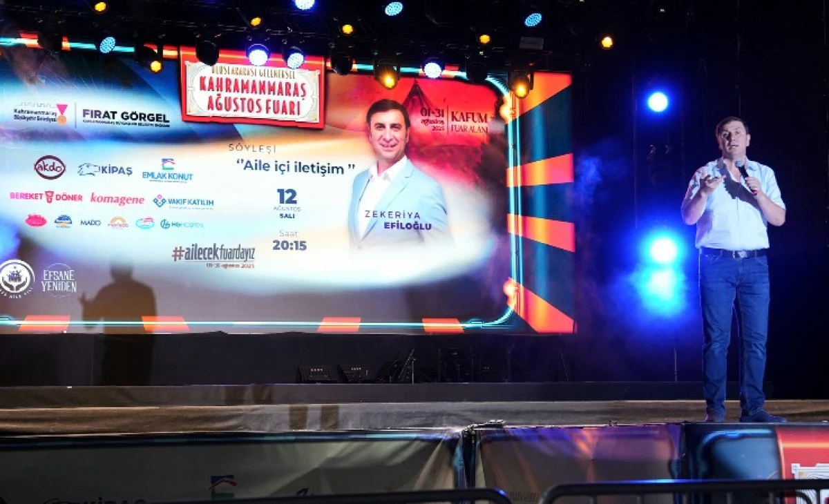Kahramanmaraş Büyükşehir Belediyesinin düzenlediği Geleneksel Ağustos Fuarı, kültürel, sanatsal ve sosyal etkinliklerle dolu programıyla devam ederken KAFUM anlamlı bir buluşmaya ev sahipliği yaptı. 2025 Aile Yılı kapsamında organize edilen etkinlikte, eğitimci – yazar Zekeriya Efiloğlu katılımcılarla “ Aile İçi İletişim” konusunu masaya yatırdı. Ailelerin yoğun ilgi gösterdiği söyleşide Efiloğlu; ailenin önemi, temel değerlerinin korunması, sağlam bir toplum inşasında ailenin vazgeçilmez rolü gibi başlıkları farklı perspektiflerden değerlendirdi. Güncel toplumsal gelişmelerden örnekler veren Efiloğlu, aynı zamanda evrensel değerler çerçevesinde aile ilişkilerini güçlendirecek öneriler paylaştı. Katılımcılar, hem pratik hayata uyarlanabilir ipuçları hem de derinlemesine sosyolojik tespitlerle zenginleştirilmiş bir program dinleme fırsatı buldu. Efiloğlu’nun sıcak ve samimi üslubu, alandaki aile bireylerinin söyleşiye aktif katılımını sağladı.