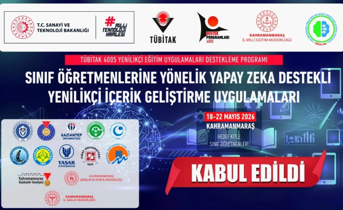 Öğretmenlere ve akademisyenlere; branşlarına ve öğretmenlik mesleğine özgü yenilikçi yaklaşım, strateji, yöntem ve tekniklerin etkileşimli olarak kazandırılmasını amaçlayan "TÜBİTAK 4005 Yenilikçi Eğitim Uygulamaları Destekleme Programı" kapsamında Kahramanmaraş önemli bir başarıya imza attı.