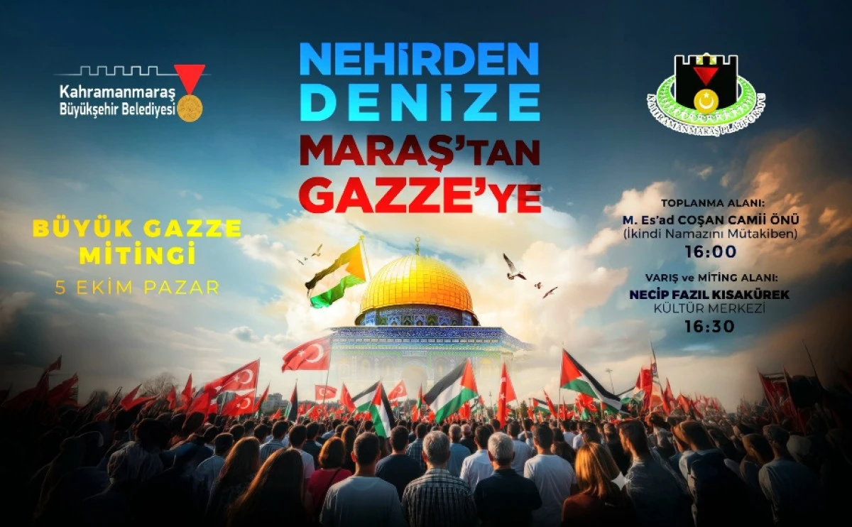 Gazze’de yaşanan insanlık dramına dikkat çekmek için Büyükşehir Belediyesi ve Kahramanmaraş Platformu iş birliğiyle 5 Ekim Pazar günü yürüyüş ve miting gerçekleştirilecek.