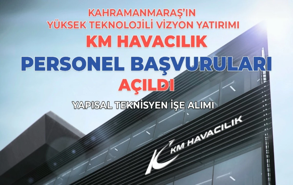 Türkiye’nin savunma ve havacılık sanayisinde önemli yatırımlarından biri olan KM Havacılık, Kahramanmaraş’ta kuracağı yüksek teknolojili tesisinde çalıştırılmak üzere yapısal teknisyen alımına başlıyor.