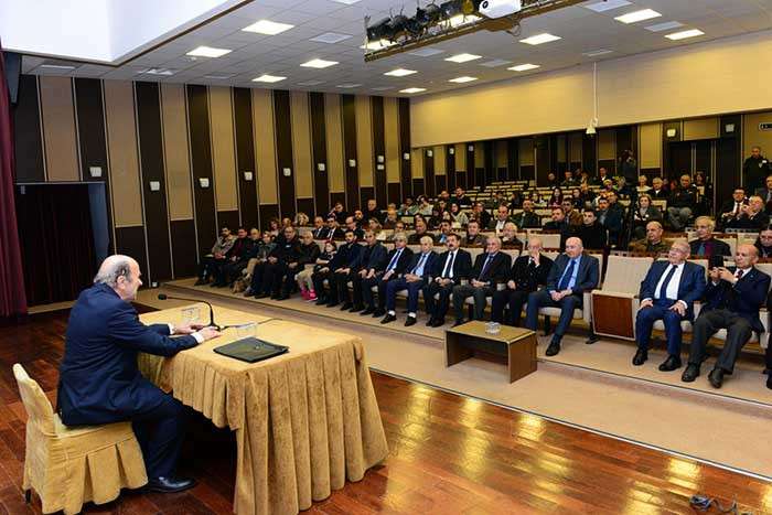 Açılış konuşmalarının ardından Başkent Üniversitesi Hukuk Fakültesi Öğretim Üyesi hukuk alanında “hocaların hocası” olarak bilinen Prof. Dr. Fikret Eren, “Üniversitelerde Hukuk Fakültesinin Rolü ve KSÜ Hukuk Fakültesinin Kurulması” konulu konuşmasını gerçekleştirdi. Prof. Dr. Fikret Eren yıllar sonra memleketi Kahramanmaraş’a gelmenin verdiği gururdan bahsederek Kahramanmaraş Lisesi’nden başlayan eğitim serüveninden ve meslek hayatındaki tecrübelerinden bahsetti. KSÜ’ye hukuk fakültesi kurulmasının gerekliliğini ifade eden Eren, konu ile ilgili kanaatlerini katılımcılarla paylaştı.