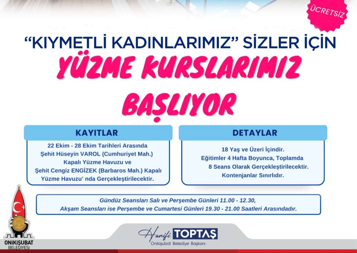 Toplumun tüm kesimlerine yönelik projelerle ‘daha mutlu ve daha yaşanabilir Onikişubat’ı inşa etmek için var gücüyle çaba sarf eden Hanifi Toptaş başkanlığındaki Onikişubat Belediyesi, son olarak kadınlara yönelik ücretsiz yüzme kursu başlattı.