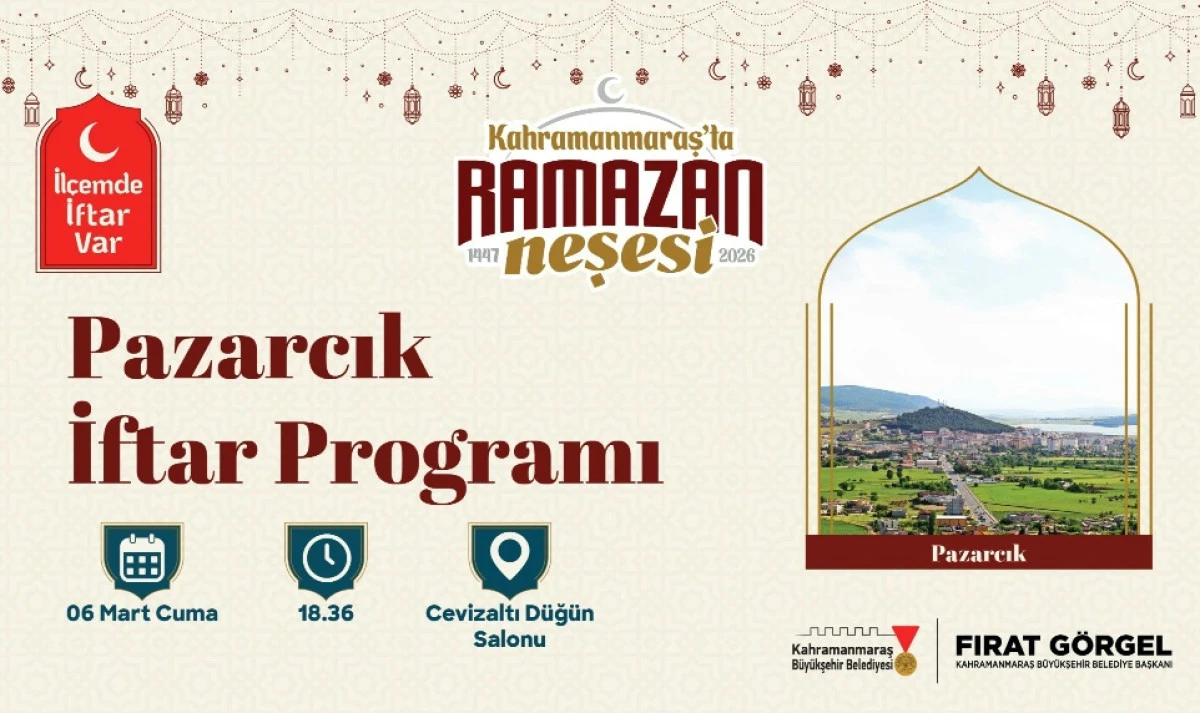 Büyükşehir Belediyesinin düzenlediği “İlçemde İftar Var” programının bu seferki adresi Pazarcık olacak. 6 Mart Cuma günü Cevizaltı Düğün Salonu’nda gerçekleştirilecek olan programda yüzlerce vatandaş bir araya gelerek Ramazan’ın paylaşma kültürünü birlikte yaşayacak.