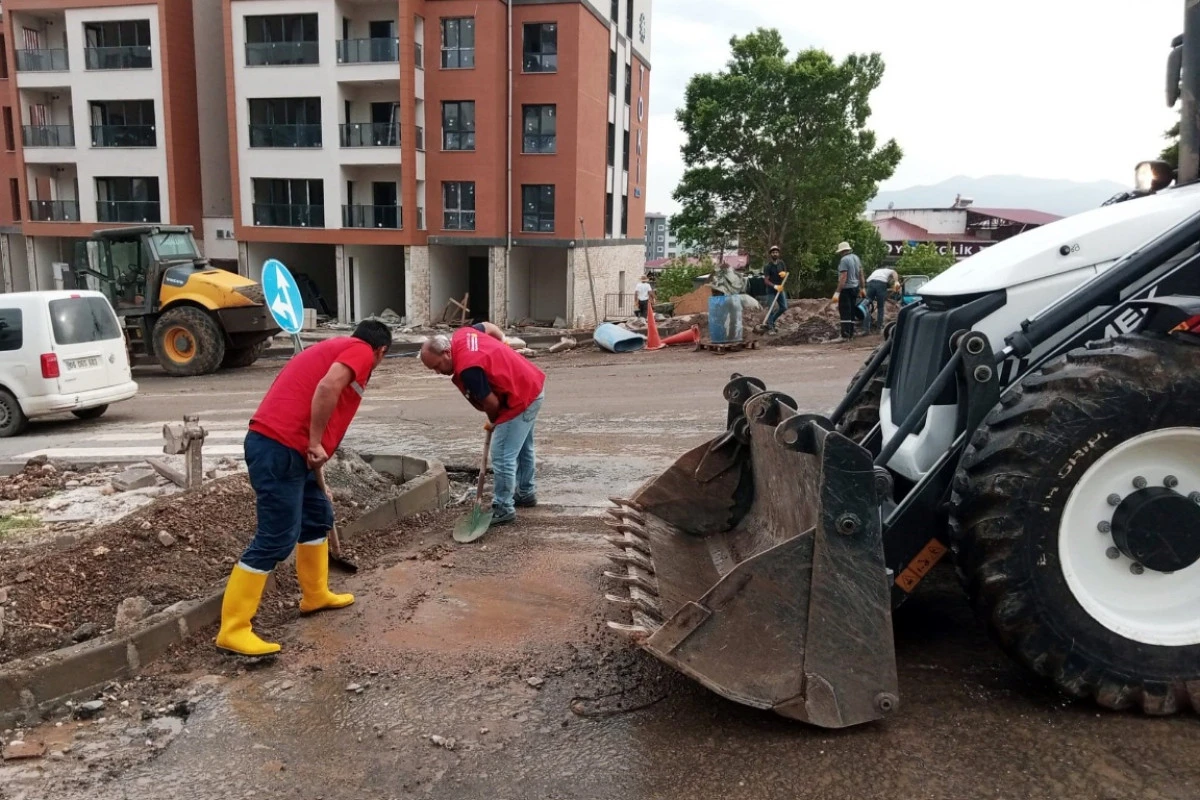 Sağanakla Caddelere Taşınan Çamurlar Temizlendi