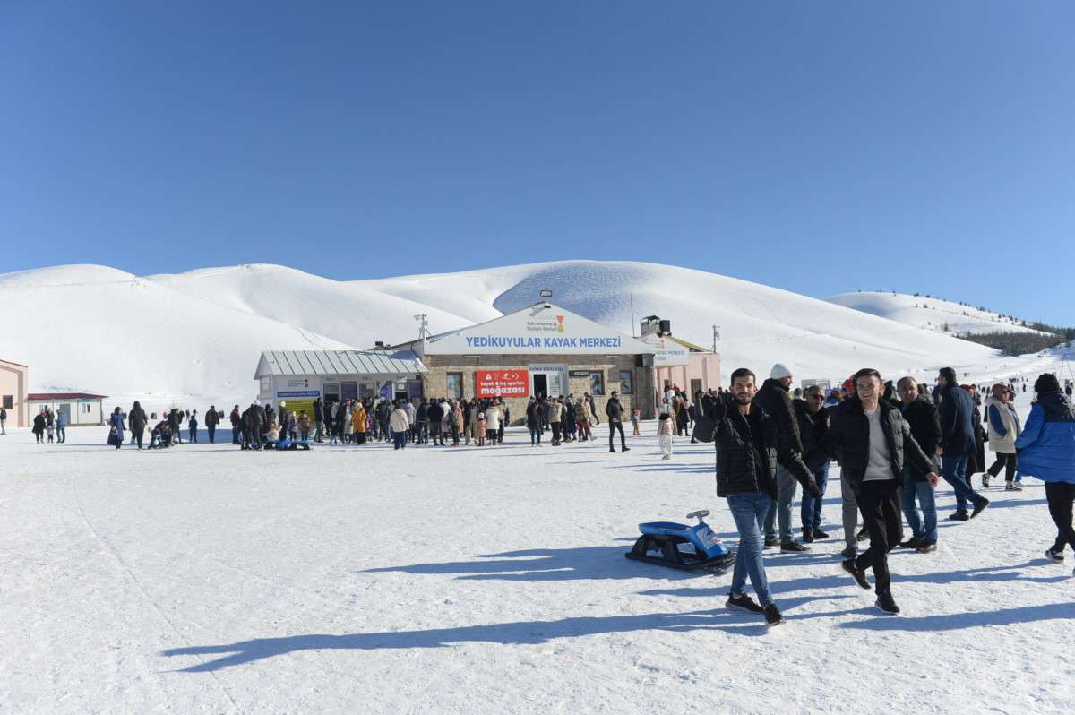 Kahramanmaraş’ın ve bölgenin en gözde kış turizm destinasyonlarının başında gelen Yedikuyular Kayak Merkezi, hafta sonu adeta ziyaretçi akınına uğradı. Şehir merkezine yalnızca 13 kilometre mesafede bulunan ve 2 bin 300 metre rakımda yer alan tesis, hem Kahramanmaraşlıların hem de çevre illerden gelen vatandaşların buluşma noktası oldu. Hafta sonu boyunca toplam 15 bin kişiyi ağırlayan tesis, doğanın ve kış sporlarının tadını çıkarmak isteyen misafirlerine unutulmaz bir deneyim sundu. Özellikle kar tutkunlarının vazgeçilmezi haline gelen Yedikuyular, farklı zorluk seviyelerindeki 5 kilometrelik pistleriyle her yaş ve yetenek seviyesinden ziyaretçiye hitap etti.
